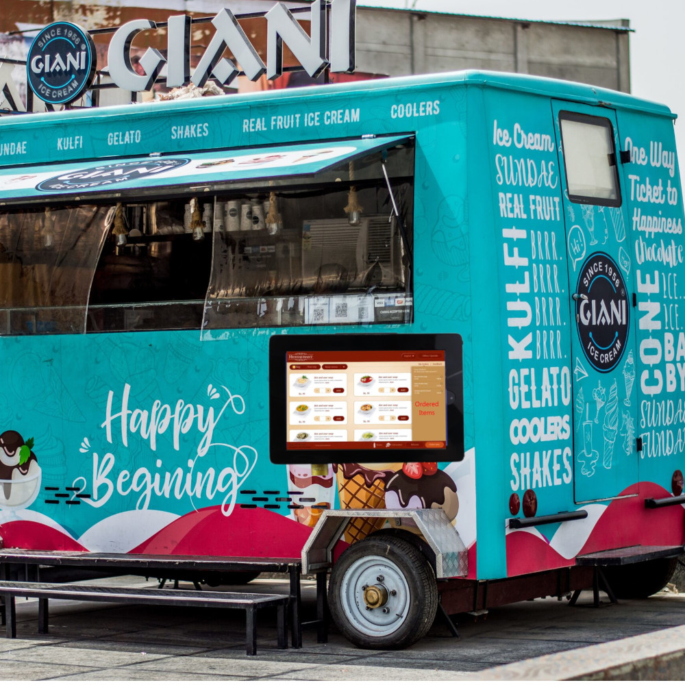 As duas de metal travadas com um cadeado. Facilidade para quem precisa retirar os tablet-iPads todos os dias.