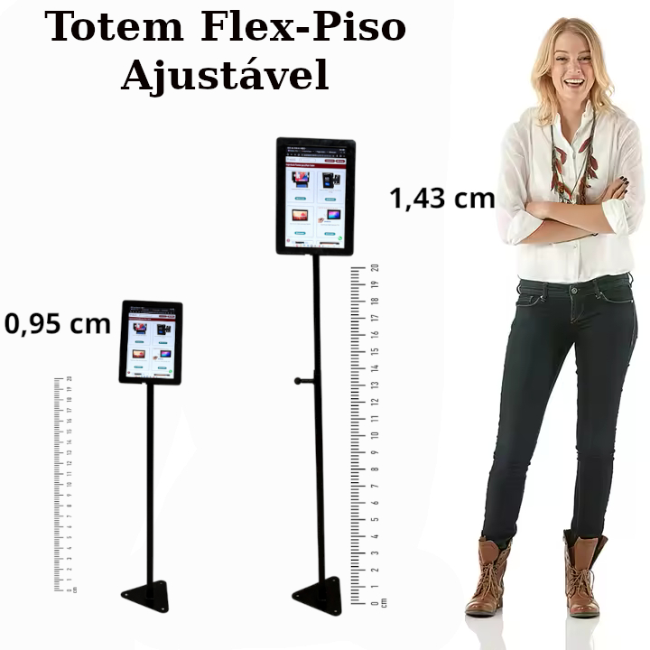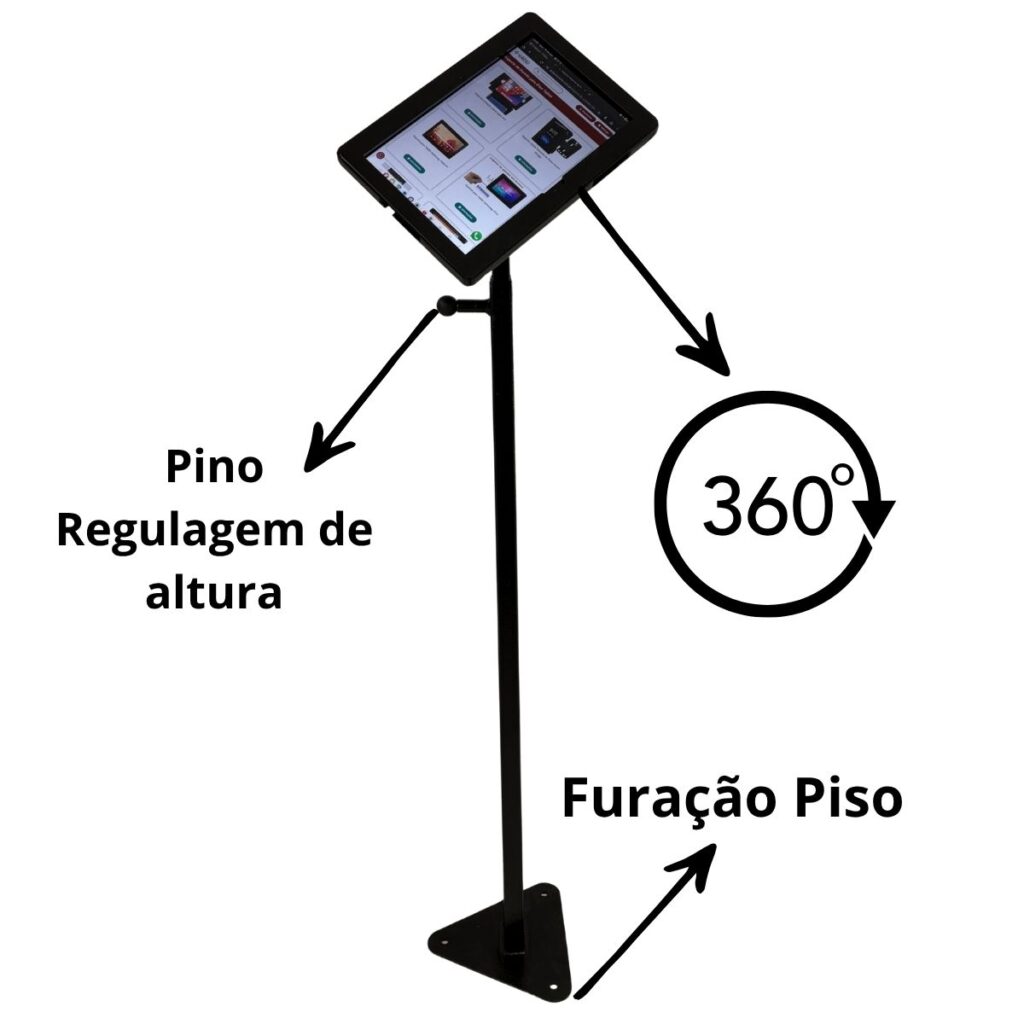 Um cliente nos pediu um totem de piso para seu tablet modelos da Samsung A9+ e pediu com as seguintes caractériscas que fosse com altura ajustável e tivesse passagem de cabo por dentro da estrututa e ainda que fosse bipartido para caso precisa mudar de local tivesse mais mobilidade.