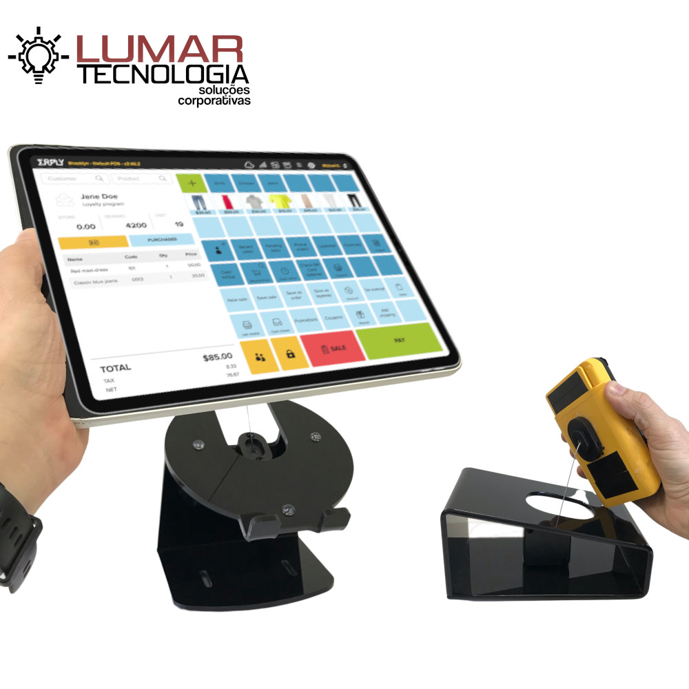 Conforto e usabilidade com a segurança que você precisa ao manusear o tablet. Permite-se utilizar em uma extensão de até 90cm com cabo de aço retrátil.