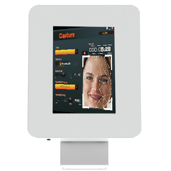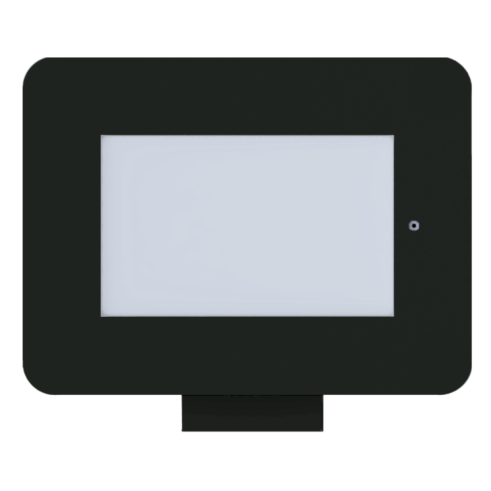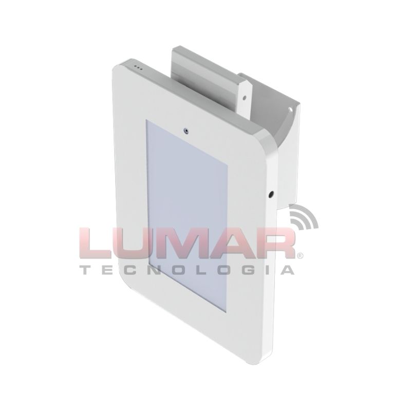 Suporte para tablet em aço carbono com pintura eletrostática e tranca com fechadura e chave. Base autoportante para usar o totem em mesa ou  fixado em parede e suporte com regulagem de inclinação. Este totem para tablet tem berços de EVA de alta densidade para proteção contra impactos. Permite colocar tablet na vertical ou horizontal,  tem espaço com passagem para cabo de energia.  Pode ser personalizado comvinil adesivo impresso  colorido. Único suporte do mercado de acabamento com arestas arredondadas. Outras personalizações e acessórios para o suporte, sob consulta.