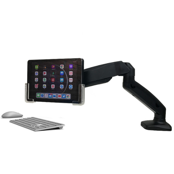 Suporte para iPad com articulação e sistema de pistão a gás, geralmente este modelo usa-se somente para monitores, mais a Lumar Tecnologia traz esta inovação para uso em iPads e Tablets.