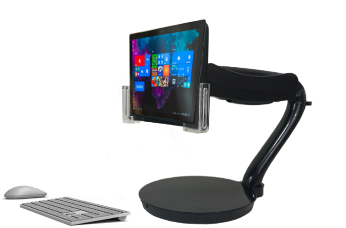 O suporte para tablet VK2022 facilita a montagem do tablet em uma mesa.