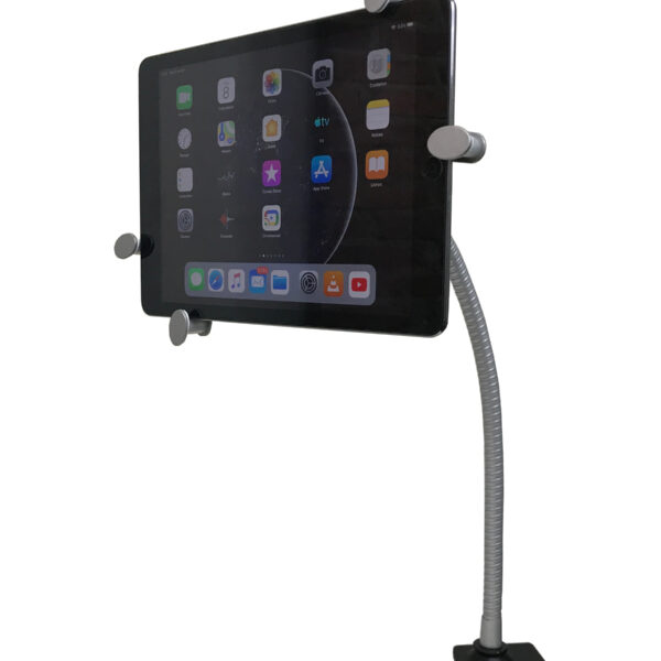 Suporte para iPad articulado para mesa, ideal para quer  economizar espaço na mesa pois este modelo é preso por sistema de grampo muito forte e resistente.