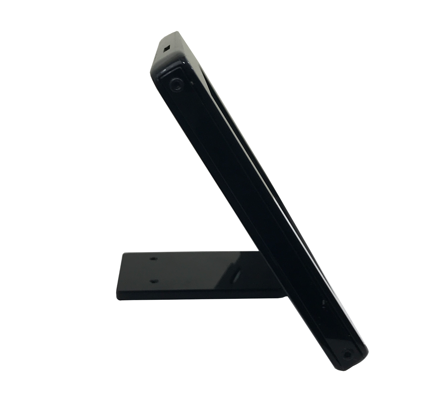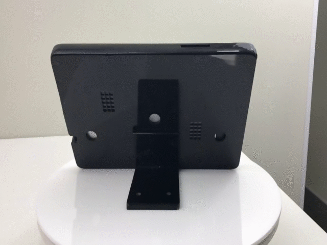 Suporte em acrílico para tablet da Samsung modelo T290, ideal para uso em sistema de cardápio digital em mesas de restaurantes e cafés;